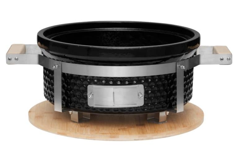 Ceramic tabletop Japanese-style charcoal grill. Hibachi grill. The mesh-like grill grid diam. 30 cm reduces food sticking to the grid. Sturdy steel base. Carrying handles make it easier to move the grill. Cast iron charcoal grid. Bamboo plate for protecting table. 10 year warranty. Check the warranty program on the website.