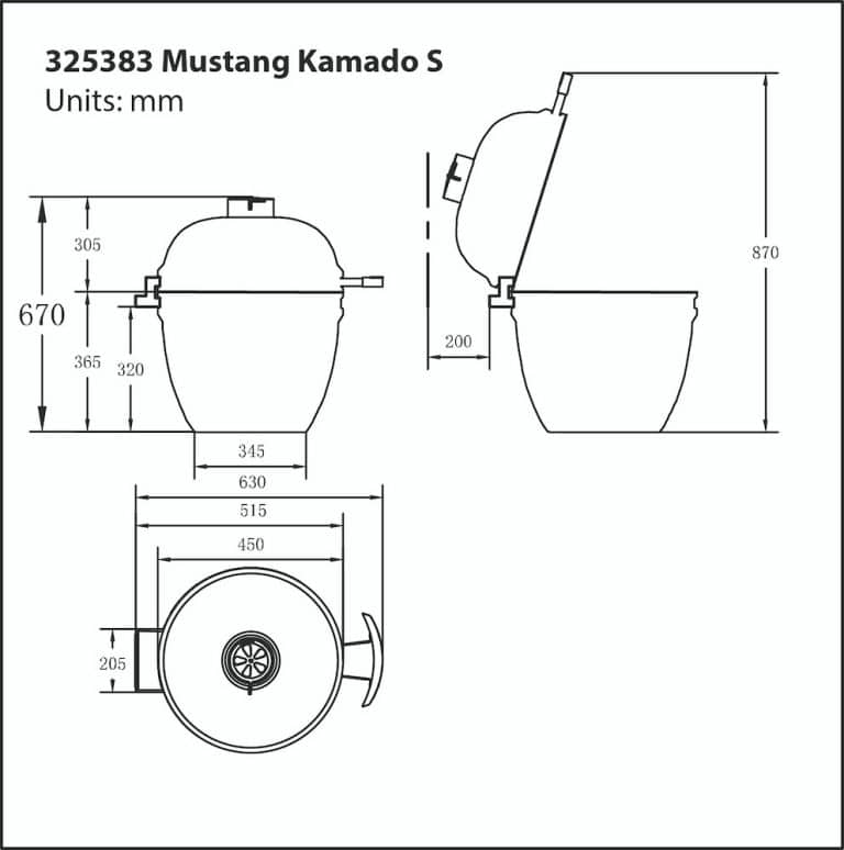Ceramic kamado style 16″ charcoal grill for slow and low grilling. Grilling grid Ø 32,5 cm is made from 304 stainless steel. Charcoal grid is made from cast iron. New Mullite cheramic clay with 1000 degrees heat resistance. New style of cast iron top vent for precise draft adjustment. Bottom vent with mesh for adding air to the coals. High-quality fiberglass seal with metal mesh on the lid and firebowl. Mustang logo on lid handle. Handle from heat treated bamboo. Including table top frame, ceramic deflector with three feets and ash tool. 10 years waranty. Check warranty program from web pages.