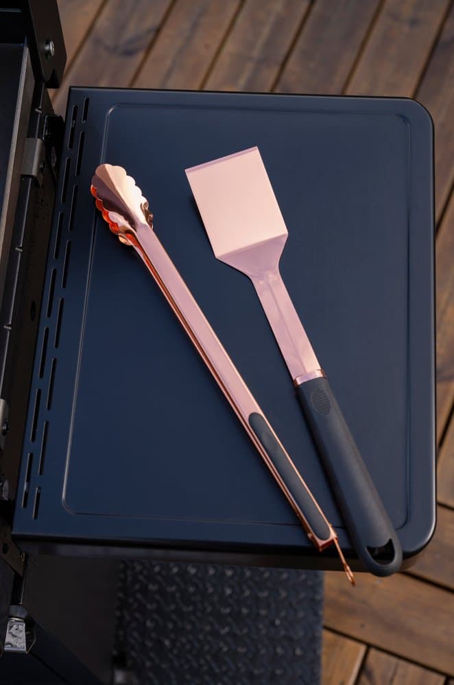 Grillilasta ruostumattomasta teräksestä. Ruusukulta pinnoite. Pituus 40 cm.