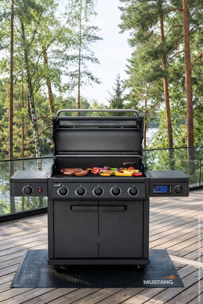 Todella näyttävä ja tukeva kaasugrilli viidellä polttimella ja infrapuna sivukeittimellä. Polttimien teho seuraavasti: polttimet 1, 3 ja 5: 3,9 kW ja polttimet 2 ja 4: 2,8 kW. Infrapuna sivukeitin 3,5 kW. Teho yhteensä 20,8 kW. Pääpolttimet SS304 ruostumatonta terästä. Grillausala 87 x 47 cm. Posliiniemaloidut grillausritilät 3 kpl 22x 47 cm ja 1 kpl 18 x 47 cm. Ritilöissä halk. 30 cm Multigrill grillausritilä. Lämmitysritilä 84 x 12 cm, ruostumatonta terästä. Lämmönjakopelti 5 kpl SS304 ruostumatonta terästä. Polttimien välissä 4 kpl heijastinpeltejä SS304 ruostumattomasta teräksestä. Grillin tuplakansi emaloitua terästä. Kannen päädyt valualumiinia. Kannessa ikkuna. Tulilaatikko valualumiinia. Ohjauspaneeli, sivutasojen etupaneelit ja kaapin ovet pulverimaalattua terästä. Sivutasot, vaunu ja pohjalevy pulverimaalattua terästä. Paristotoiminen polttimien sytytys. Sivutasoissa ripustuskoukut tarvikkeille. 4 kpl siirtopyöriä. Grillin erikoisuus on termostaattiohjattu lämpötilansäätö epäsuoraan grillaamiseen. Kaasupullo saa olla kaapissa myös grillaamisen aikana. Sopiva suojapeite 602303. 10 vuoden takuu. Tarkista takuuohjelma nettisivuilta.