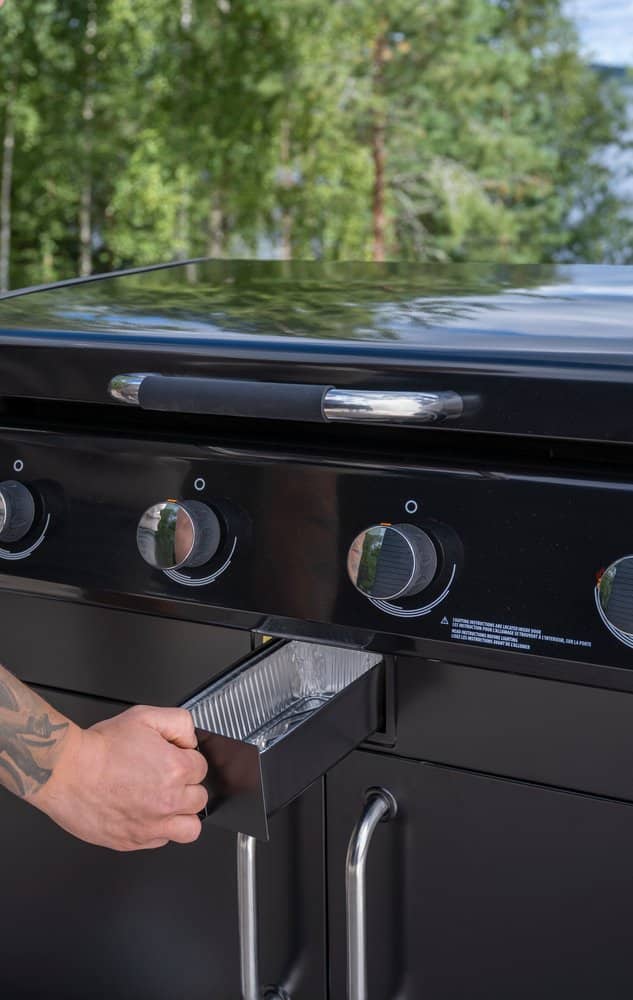 36″ parilakaasugrilli neljällä u-polttimella. Teho 4x 4,1 kW. Kokonaisteho 16,4 kW. Grillausala 90,5 x 50 cm. Paistoparila hiiliterästä, jossa keraaminen pinnoite. Grillin runko, vaunu, kaapin … Lue lisää