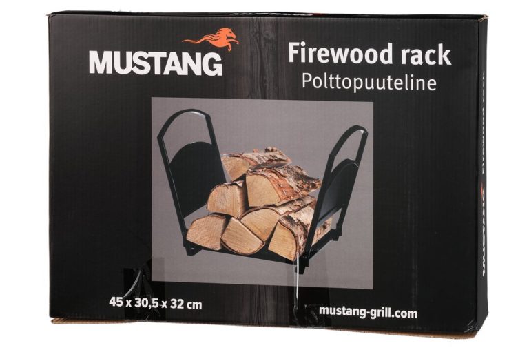 Tyylikäs taittuva polttopuuteline. Helppo taittaa kasaan ja varastoida polttokauden ulkopuolella. Mitat avattuva 45×30,5×32 cm.