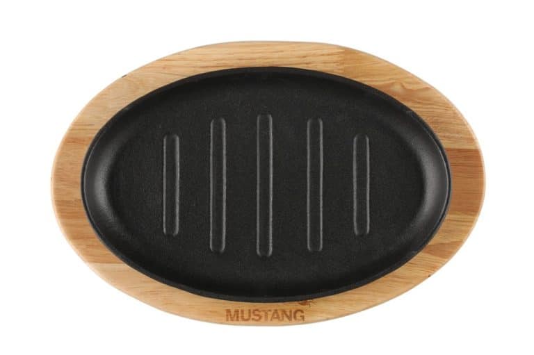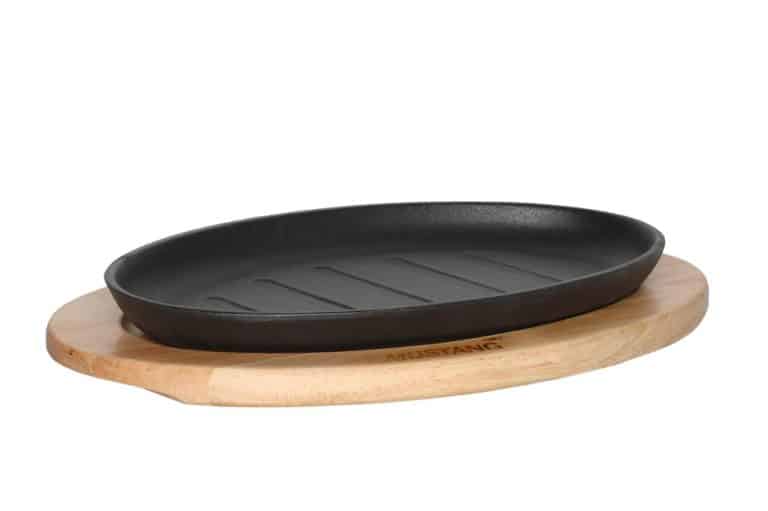 Valurautapannu 27,5 x 18 cm. Irtokahva. Pannun mukana kumipuinen alusta 33 x 22 cm. Ihanteellinen ruoan valmistamiseen ja tarjoiluun.
